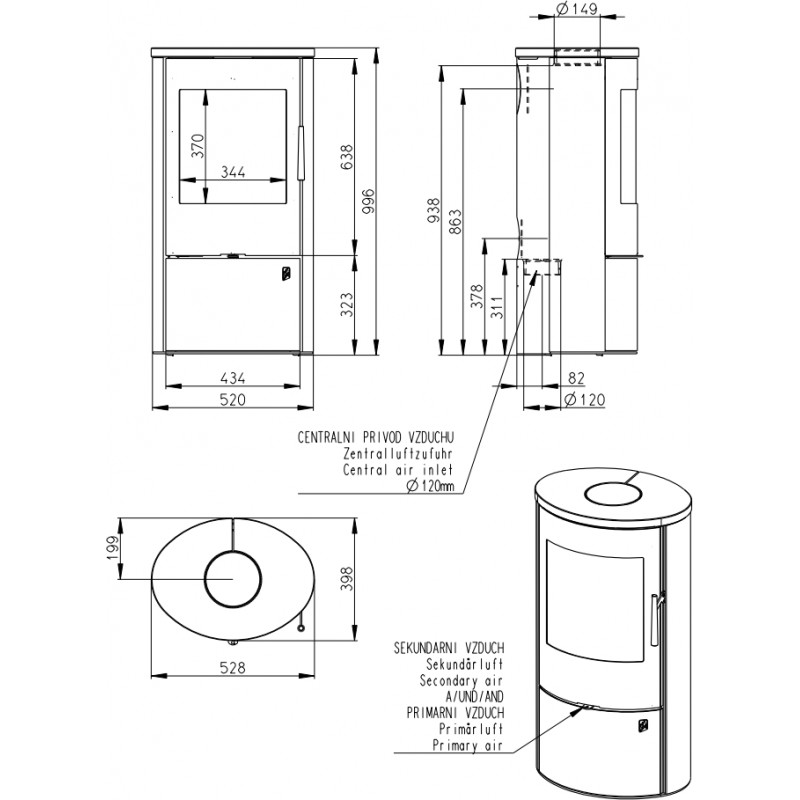 Průměr kouřovodu: 150 mm