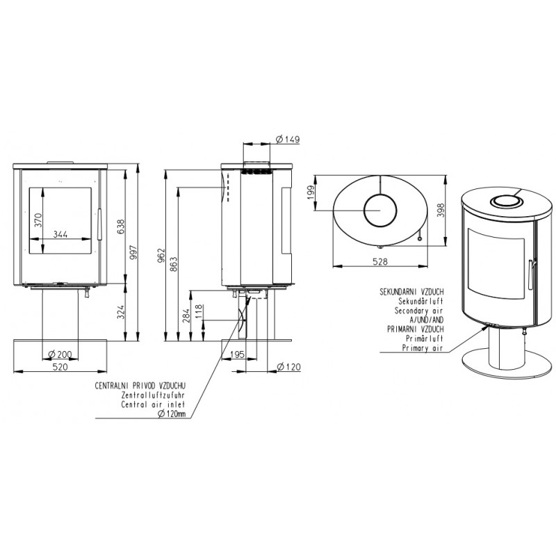 Romotop Evora T 06 krbová kamna, plech, pískovec"Prostorově nenáročné topeniště posazené na elegantní nožce."