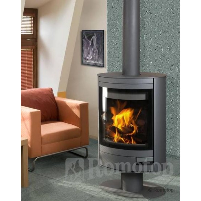 Romotop Stromboli 03 krbová kamna, plechVyvýšené topeniště umístěné na elegatní nožce a otočný mechanismus krbových kamen STROMBOLI N03 dávají možnost cítit sálající teplo ve všech koutech místnosti. Novinkou u tohoto modelu je centrální přívod vzduchu a nový design.