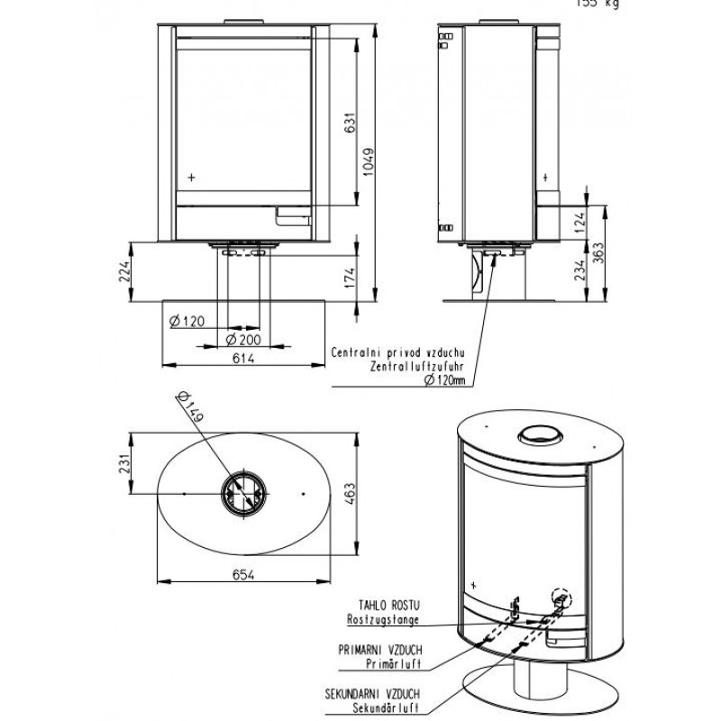 Průměr kouřovodu: 150 mm