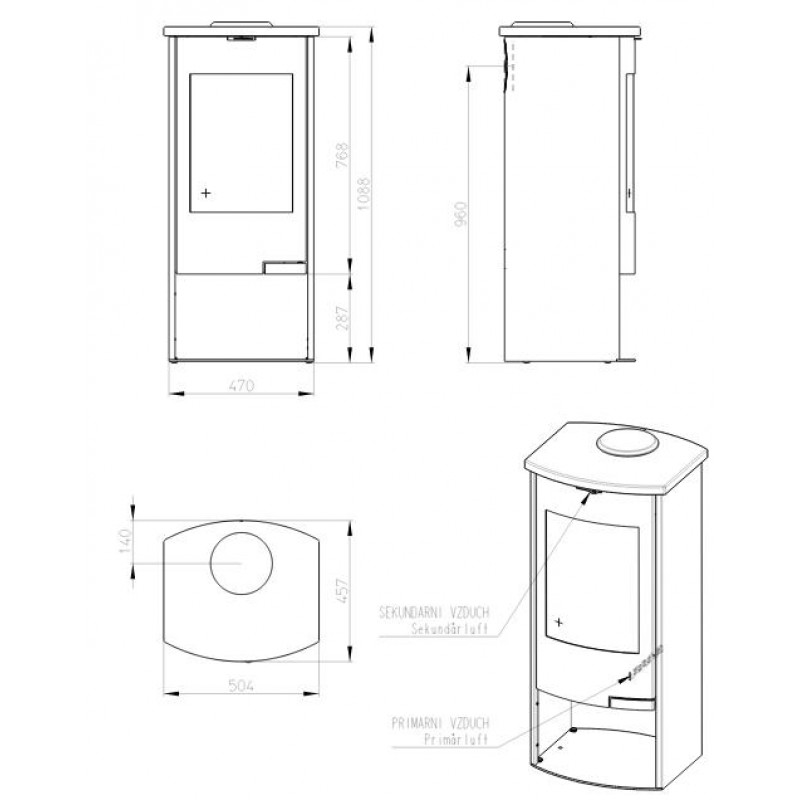 Romotop Tala 02 krbová kamna plech, rádiusová dvířka, keramika