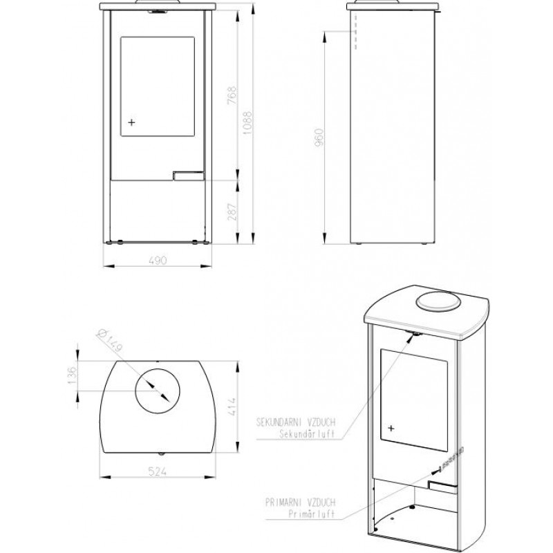 • přívod sekundárního vzduchu, díky kterému je sklo dvířek omýváno, a tak nedochází k usazování nečistot