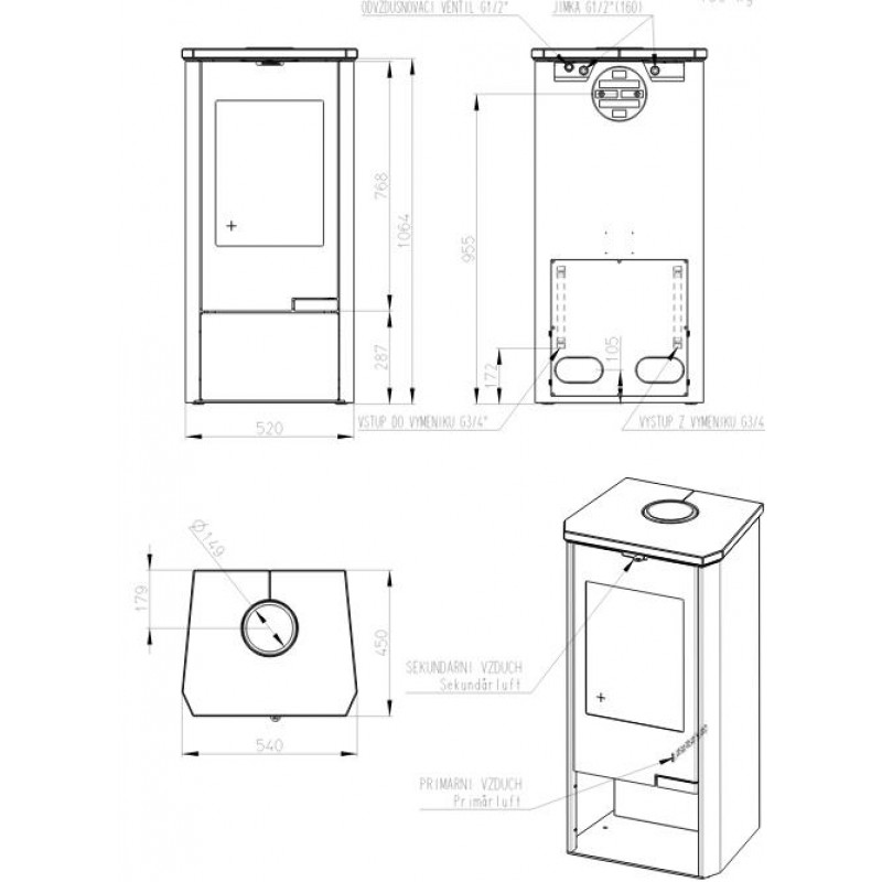 Průměr kouřovodu: 150 mm