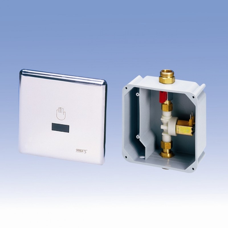 SANELA automat. ovládání sprchy SLS 02 se směšovací baterií 02020- reaguje na přiblížení ruky před průzor snímače okamžitým sepnutím elektromagnetického ventilu