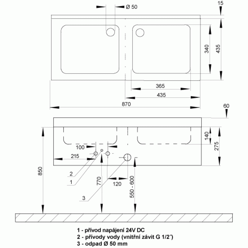 SANELA Nerezový dvojdřez SLUN 06EXB s baterií SLU 10B 93066- nerezový závěsný dvojdřez s opláštěním