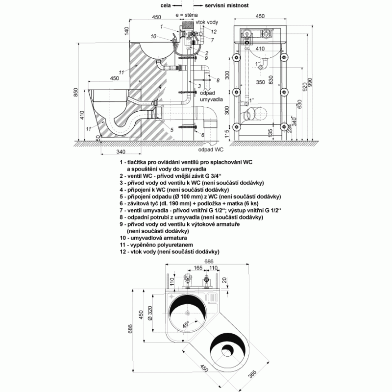 - Pre odoslanie na Slovensko navštívte SANELA WC s umývadlom do rohu SLWN 08ZP, WC závesné vpravo, závitové tyče 94084