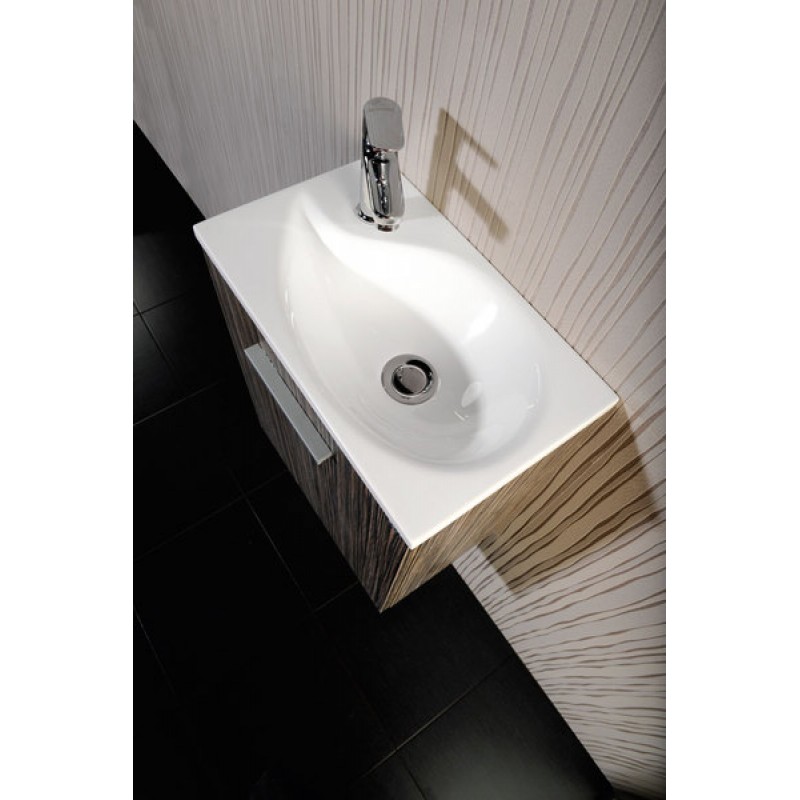 Malé umyvadlo z litého mramoru s nevšedním tvarem, které v kombinaci se skříňkou LATUS vytváří dokonalý pocit vyjímečnosti ve Vaší koupelně.