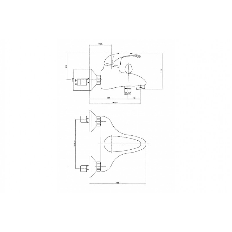 Nástěnná páková vanová baterie.