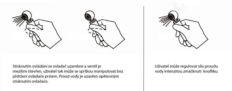 Po použití doporučujeme baterii uzavřít. Stop ventil (klik-klak) na spršce slouží k okamžitému spuštění vody. Balení neobsahuje sprchovou hadici.