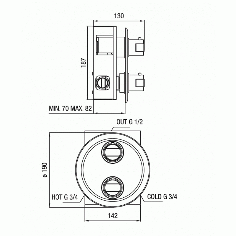 Podomítková termostatická sprchová baterie pro 1 výstup.