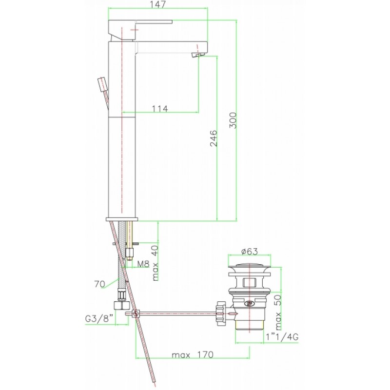 Balení obsahuje uzavírací výpusť a přívodní flexibilní hadice.