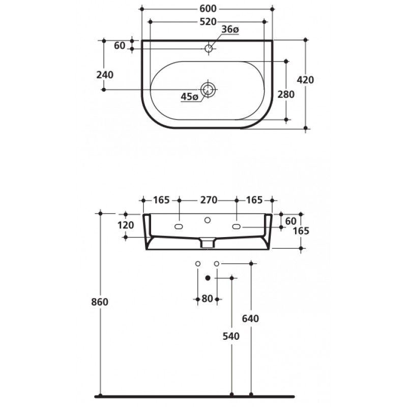 Za příplatek lze dodat umyvadlo bez otvoru pro baterii.