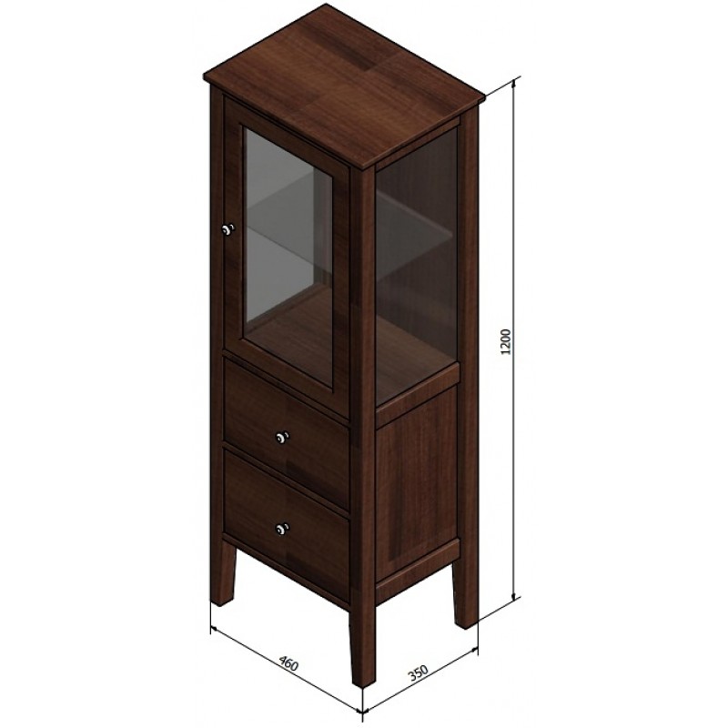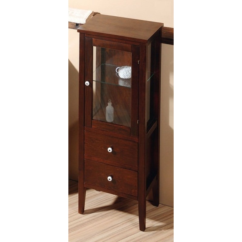 V horní části prosklená dvířka (čiré sklo), uvnitř jedna skleněná police.