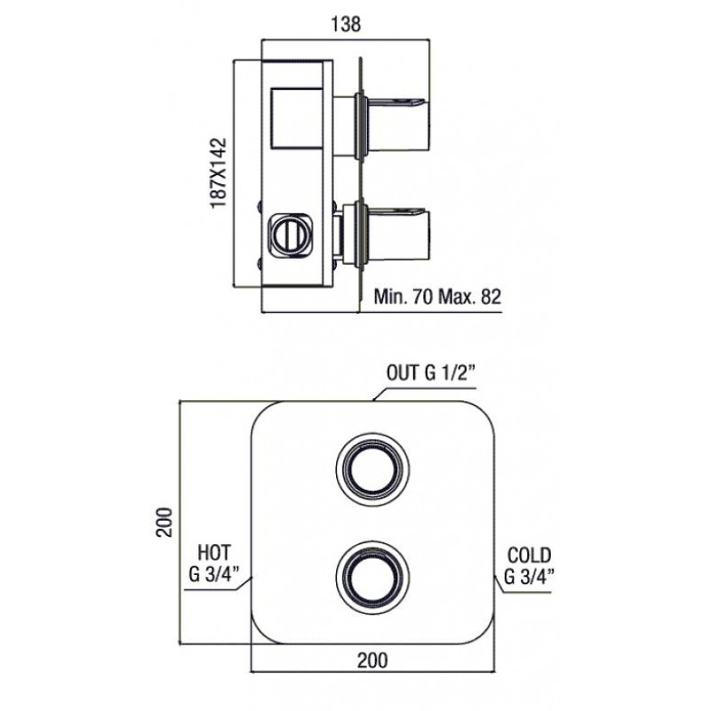 Podomítková termostatická sprchová baterie pro 1 výstup.