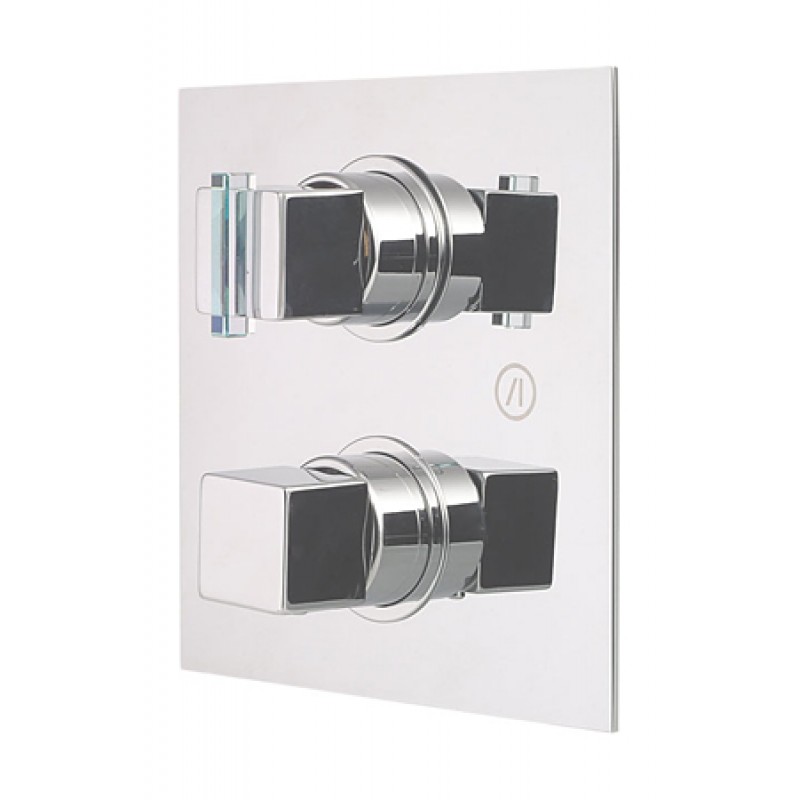 Vodovodní termostatické baterie INFINITI představují top v designu baterií. Tento fakt umocňuje použití skla na rukojetích baterií. Doplňky ze skla jsou průhledné, pouze mají mírně zelenkavý nádech. Díky ovládacím prvkům z pochromované mosazi mají tyto baterie zvýšenou odolnost proti otěru a lze je použít do zátěžového prostředí. Podomítková sprchová termostatická baterie pro jeden výstup má bezpečnostní pojistku SECUREstop.