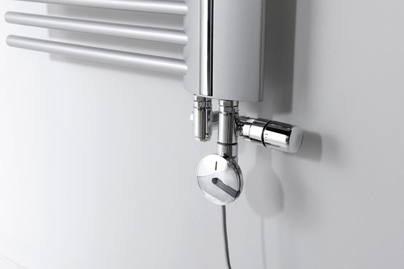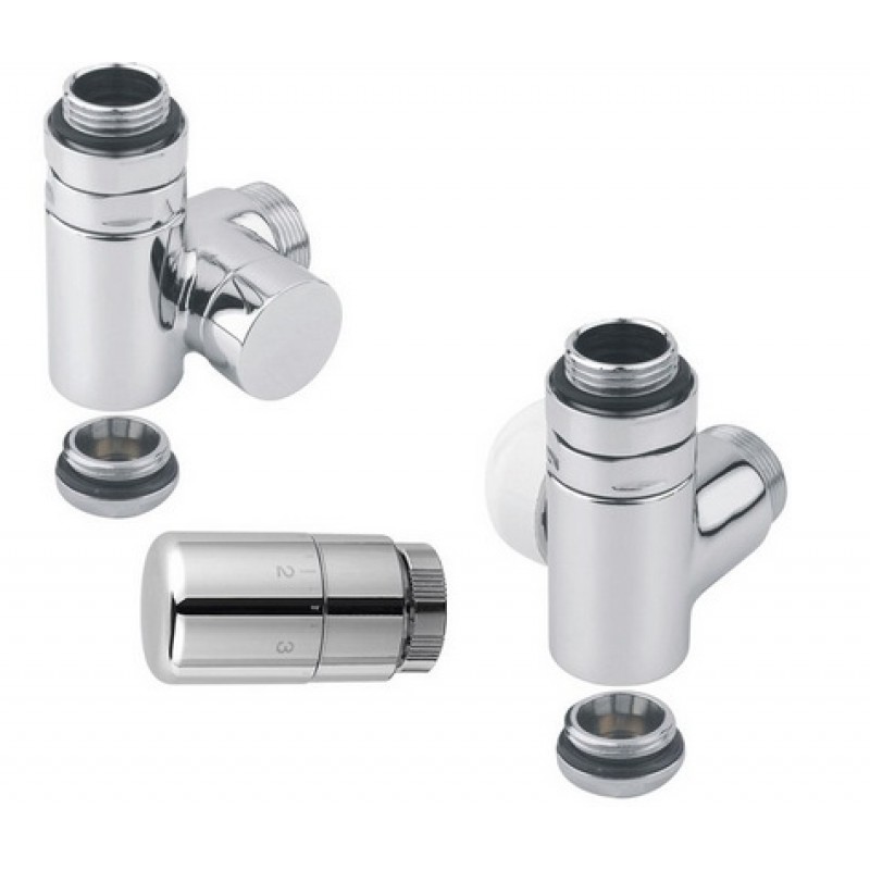 Designová sada ventilů s termostatickou hlavicí vhodná pro připojení otopných těles, kde zákazník předpokládá kombinaci s elektrickým topným tělesem s vnitřním závitem G1/2".