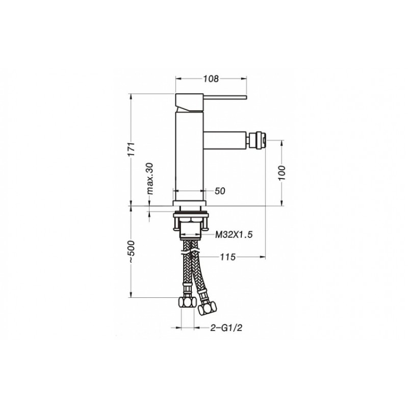 Vodovodní, stojánková páková bidetová baterie, bez výpusti.