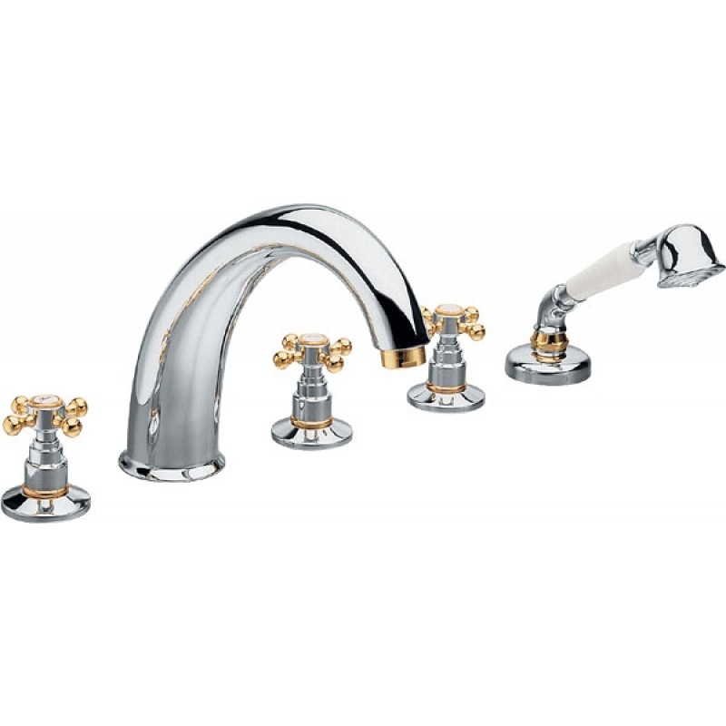 SAPHO NA OKRAJ VANY 3312 Pětiprvková baterie s přepínačemVodovodní baterie ANTEA Vás vrátí o několik desítek let zpět a v retro stylu si můžete vybavit celou koupelnu počínaje bateriemi, pokračuje přes koupelnové doplňky a keramiku, až po retro vanu do prostoru. Pocit luxusu jako na zámku Vám dodají baterie s povrchovou úpravou chrom/zlato. Kdy tělo baterie je chromové a zlaté jsou perlátor, matky, krytky pod kohoutky a detaily na kohoutcích.