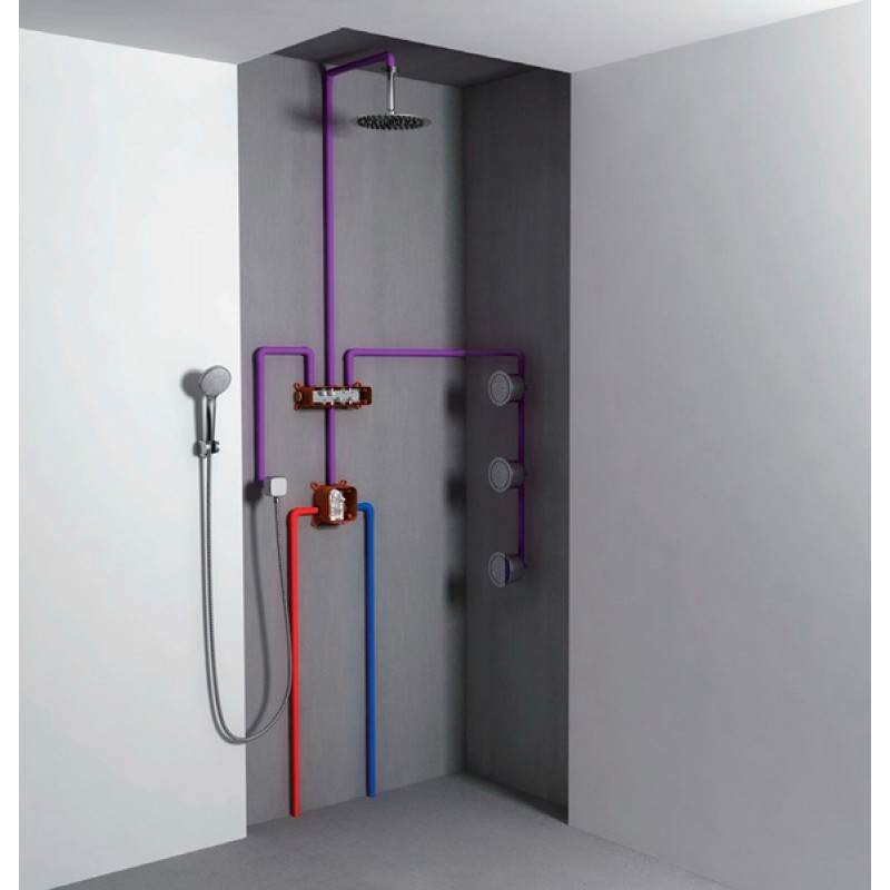 Umožňuje kombinaci přepnutí hlavové sprchy, ruční sprchy a bočních trysek.