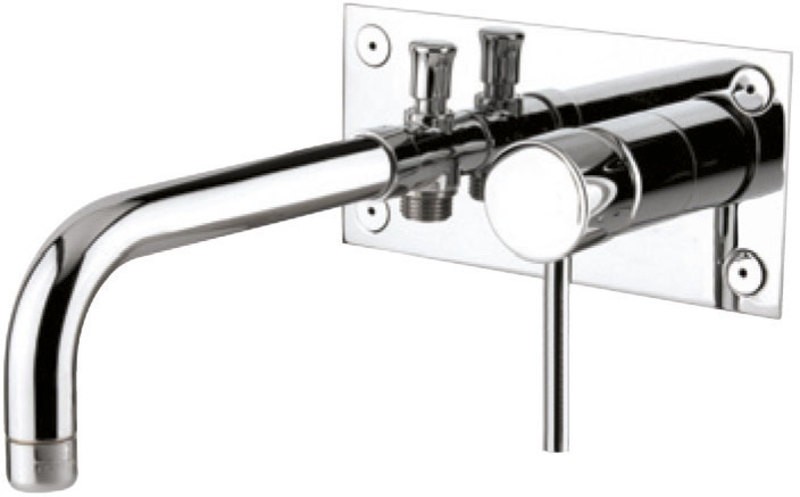 Podomítková páková vanová baterie s přepínačem pro hubici a ruční sprchu.