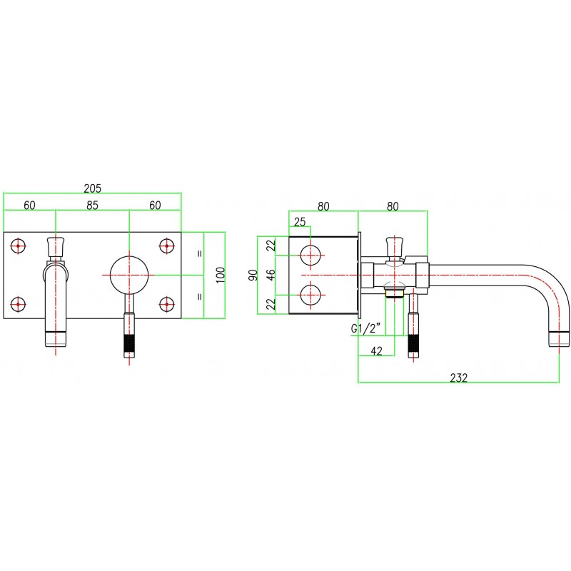 Součástí baterie je podomítkové těleso o rozměrech 205x90x80 mm.