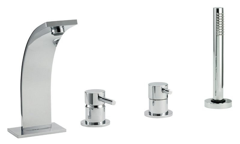 - čtyřprvková baterie na okraj vany s výtokovou hubicí