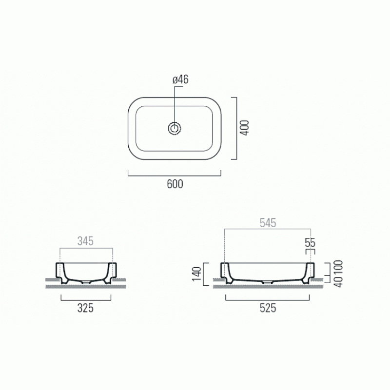 SAPHO TRACCIA 693711 keramické umyvadlo 60x14x40cm, na deskuSanitární keramika TRACCIA