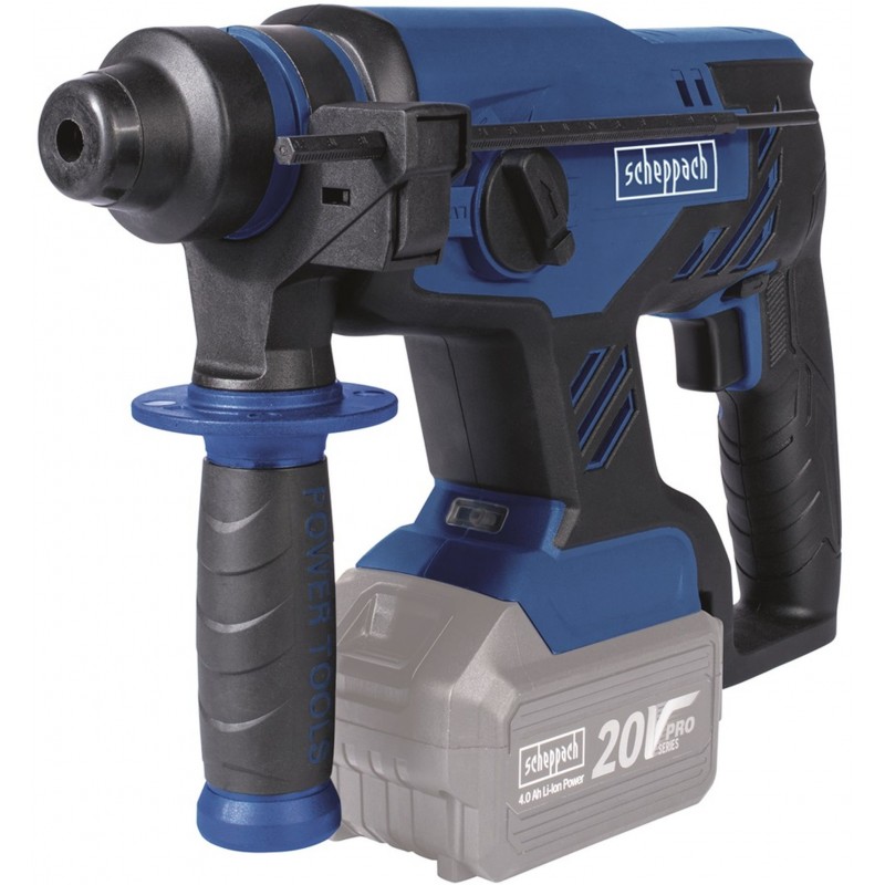 Základní výhodou stroje je silný bezuhlíkový motor, který má oproti běžným uhlíkovým výrazně více výkonu, nižší tření, je téměř bezúdržbový a má výrazně delší životnost. I díky tomu kladivo disponuje širokým rozsahem otáček s maximem 1400 ot/min. a silou úderu 1,7 J. Stroj disponuje čtyřmi funkcemi: vrtání (pro vrtání do dřeva, plastu nebo kovu), vrtání s příklepem (pro vrtání do betonu, cihel nebo zdiva), sekání (odstraňování dlaždic, čištění ploch od nálitků, sekání vedení pro kabely apod.) a sekání s uzamknutím sekáče v požadované poloze. Uchycení SDS Plus zajišťuje snadnou a rychlou výměnu nástroje bez použití nářadí. Stroj se dodává s přídavnou polohovatelnou rukojetí a hloubkovým dorazem. Stroj lze používat s bateriemi Scheppach 1,5/2/4 Ah. Stroj se dodává bez baterie a nabíječky.