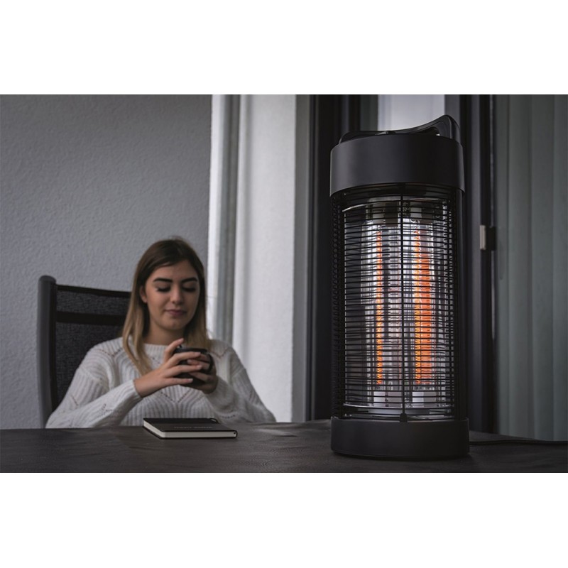 • I když se tento typ ohřívače díky jiné technologii nerozpálí zdaleka tolik jako ty klasické, stále vyzařuje velmi příjemné oranžové světlo a je zde i ochranná mřížka a bezpečnostní spínač, který topidlo při převržení automaticky vypne.