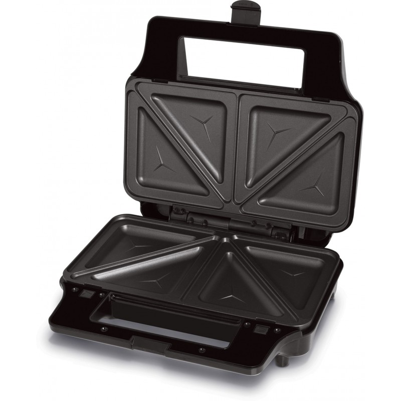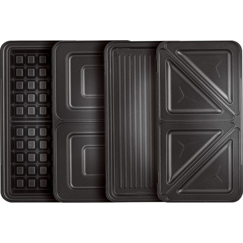 • 4 výměnné desky na pečení 285 x 152mm (trojúhelníkový tvar sendviče, panini, 2 extra hluboké pro vafle a sendviče)