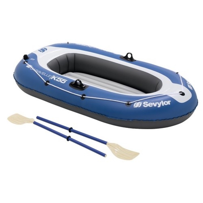 SEVYLOR Nafukovací člun CARAVELLE KK 55 2000009549Materiál: PVC; Dno: I Beam; Počet vzduchových komor: 4; Rozměr: 192 x 108 cm; Rozměr ve sbaleném stavu: 57 x 29 x 14 cm; Nosnost: 120 kg; Hmotnost setu: 3,8 kg; Hmotnost lodi: 2,8 kg; Součástí balení je: nožní pumpa, 2 pádla, transportní vak, opravná sada.