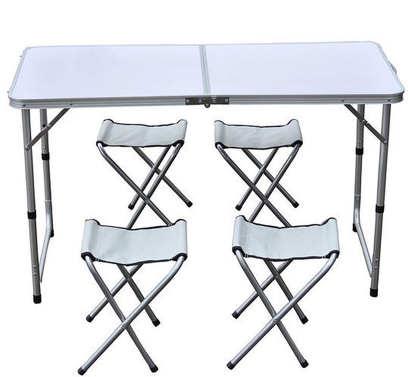 Čtyři židličky a stůl pro rodinné chvíle relaxu!Vybalení a příprava pětidílné sady zabere sotva pár vteřin, stůl je skládací s nastavitelnou výškou ve třech polohách. Čtyři židličky s nosností až 110 kg lze pak při skládání uložit do kufříku.