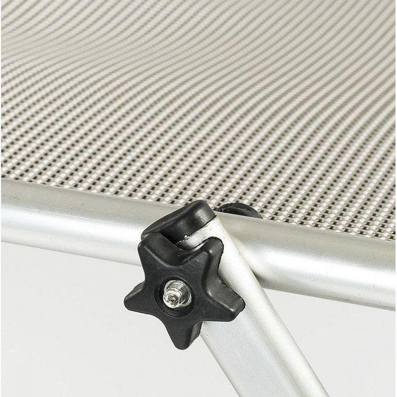 Kempingové lehátko Terst se střechou je vyrobeno z ocelové konstrukce v módním šedém odstínu provedení. K dispozici je šest poloh opěradla pro ideální polohu Vašeho těla. Součástí balení je nastavitelná stínící stříška, kterou jistě oceníte v parných dnech na přímém slunci. Lehátko lze rychle a snadno složit do úsporných rozměrů pro uskladnění.Technické specifikace: