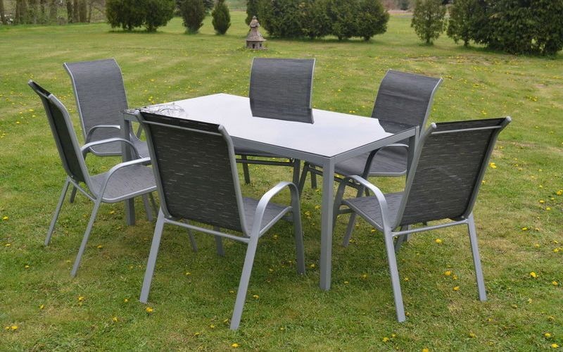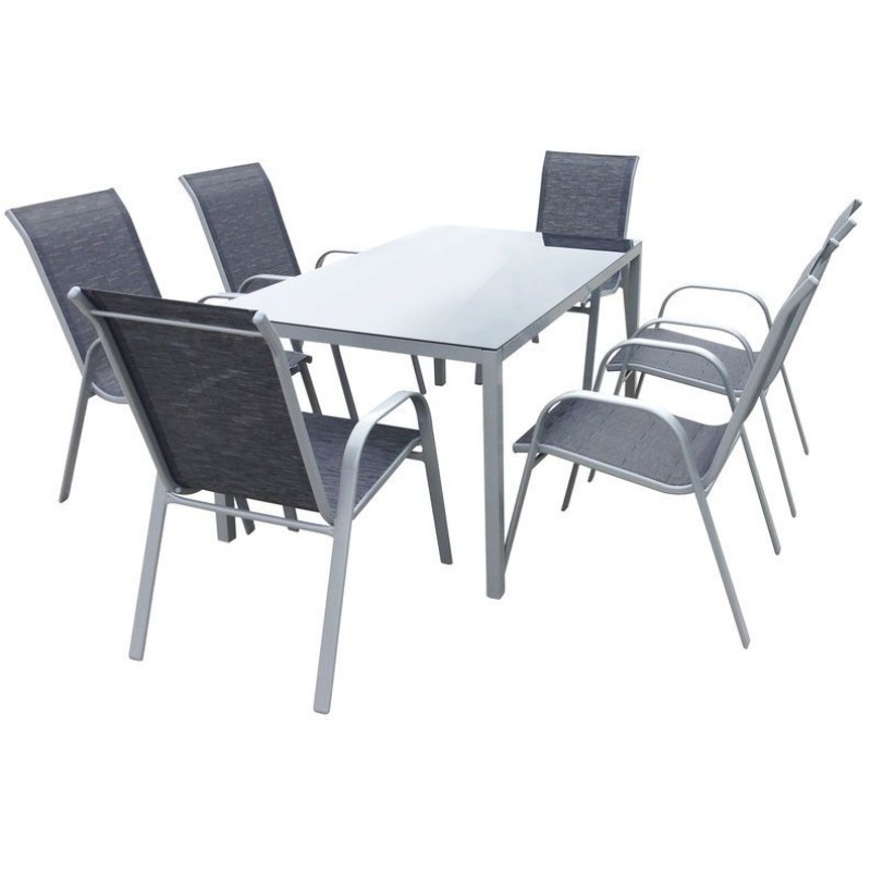 SHARKS SET zahradního nábytku Linda SA038Moderní sestava zahradního nábytku s šesti židlemi v balení. Set oceníte na krytých prostorách své zahrady, chaty nebo ideálně terase. Lehké, ergonomické židle z polypropylenového vlákna podobající se textilním vlastnostem, jsou snadno uskladnitelné pomocí systému stohování. Loketní operky v přirozené výši těla, pohodlné posezení i bez polstrovaných podsedáků. Konstrukce židle a stolu z hliníko-ocelové slitiny, vynikající a precizní zpracování. Setu dominuje rozměrný stůl v moderním designu a tvrzeným sklem odolným proti nárazu. Jedná se o sezónní nábytek, nedoporučuje se dlouhodobé ponechání ve vlhkém prostředí. Nízká hmotnost stolu i židlí zaručuje snadné přemístění.