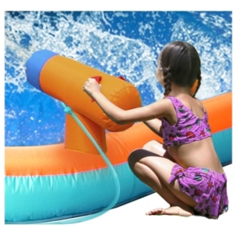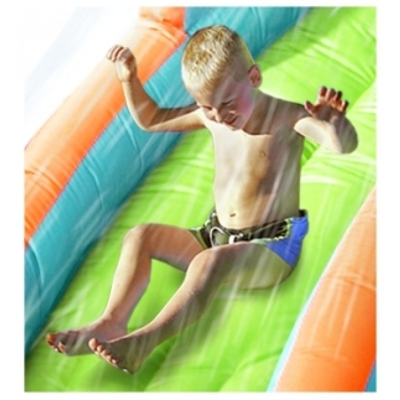 SHARKS Vodní skluzavka s vodním dělem BA009Zábavná skákací atrakce zabezpečená síťovinou, vstup a výstup je skluzavkou s bezpečnostními mantinely.