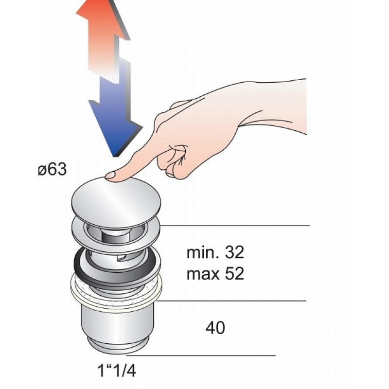SILFRA uzavíratelná kulatá výpusť pro umyvadla s přepadem kliklak, V 32-52mm, c 8530.360.5KLIKLAK je moderní variantou výpustí do umyvadel. Již nemusíte přemýšlet kam odložit gumovou zátku, nebude Vám překážet řetízek, ani Vás nebude otravovat nepohodlné ovládání zátky pomocí táhla u baterie. Systém KLIKLAK je ovládán pouhým stlačením zátky.