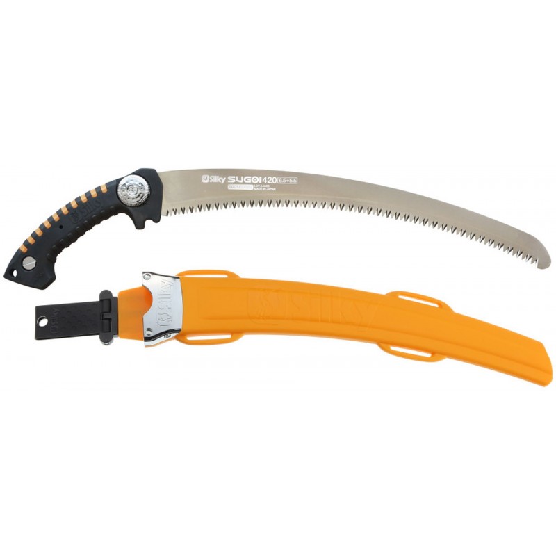 Řada Sugoi je tvořena širokou paletou arboristických pil Silky se zahnutým pilovým listem a vysokým řezným výkonem. Netahejte se již na strom s těžkou motorovou pilou a využijte sílu tradičních japonských pil. S pilami Sugoi budete pracovat bezpečněji a efektivněji. Ani větší úkony, jako je kácení stromů, nepředstavují pro Sugoi žádný problém. Dokonale zakřivená čepel je vyrobena ze speciální kovové slitiny, která ji činí pevnou a zároveň pružnou. Pily Sugoi řežou dřevo rychle a bez vibrací a zanechávají po sobě hladký řez, který snadno přeroste.