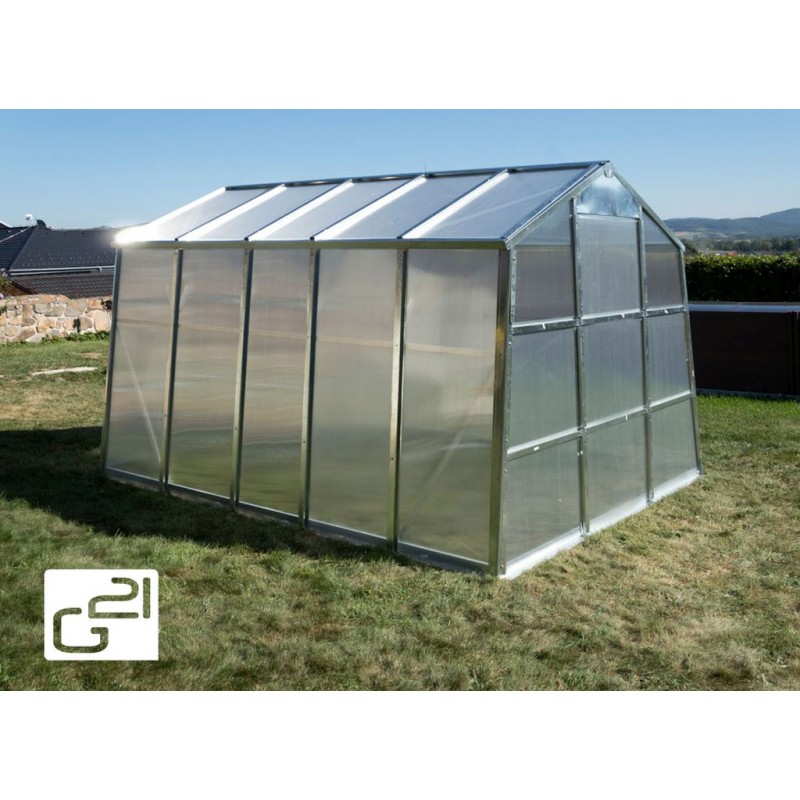 Skleník G21 GA-59 3,1 x 2,51 m se základnou je vhodný pro každou zahradu. Má dobré termoizolační vlastnosti, díky kterým si budete moci prodloužit pěstitelskou sezónu.Zahradní skleník má novou konstrukci z kvalitních pozinkovaných profilů a prosklení skleníku zajišťuje výplň z dutinkového polykarbonátu o tloušťce 4 mm, který má po jedné straně UV folii, díky které polykarbonát nežloutne a nekřehne.