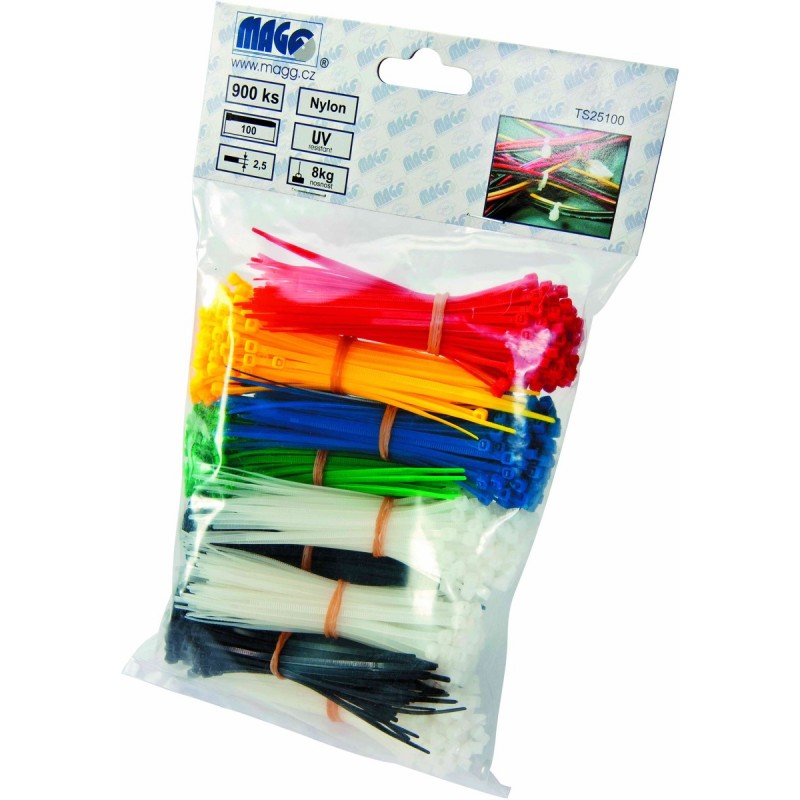 Stahovací pásky sada, 2,5x100mm barevné/900ks