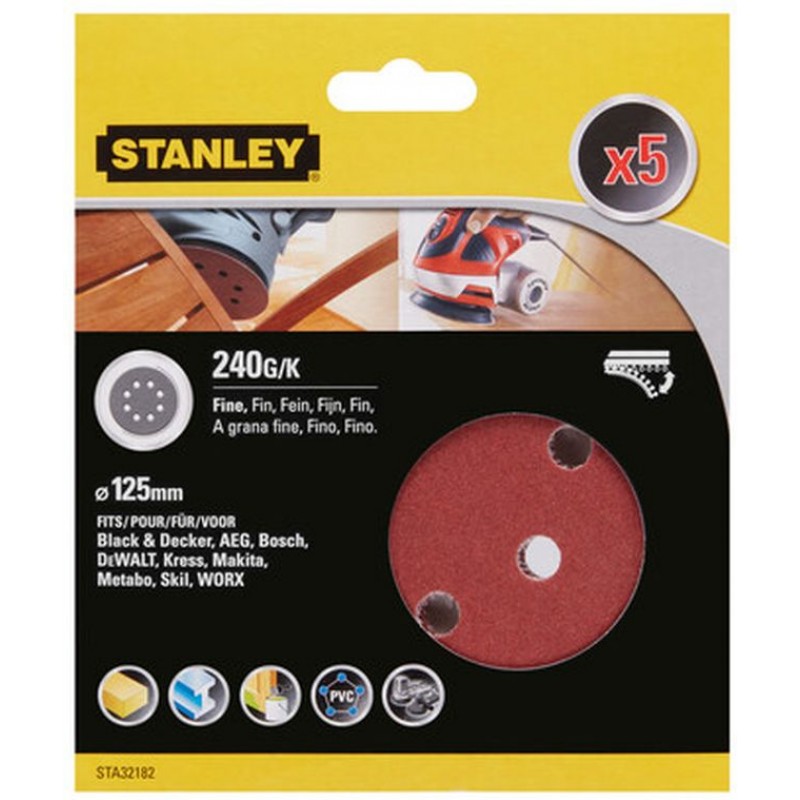 STANLEY STA32182-XJ Brusné papíry pro excentrickou brusku 125mm, P240, 5ks