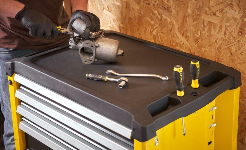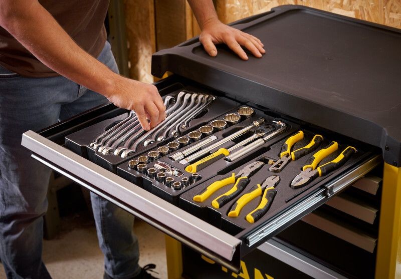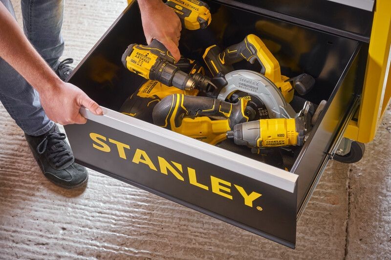 • Skříňka STANLEY® s 5 zásuvkami obsahuje 1 hlubokou, 1 střední a 3 mělké zásuvky pro uspořádání nářadí a příslušenství