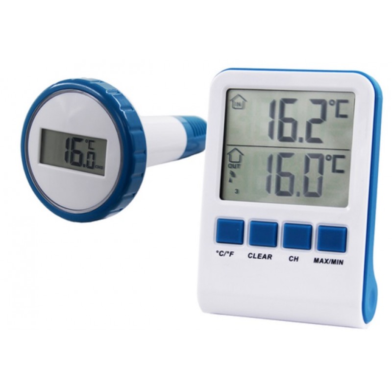 Teploměr je vhodný pro jezírka a bazény.Ukazatel teploty vzduchu + teploty vody