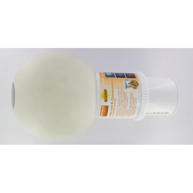Plovoucí dávkovač Globe 079075Plovoucí dávkovač k použití bazénové chemie v tabletových formách až do velikosti 200g, včetně solárního osvětlení. Integrovaná solární destička a LED světla pro noční provoz. Mění barvy.