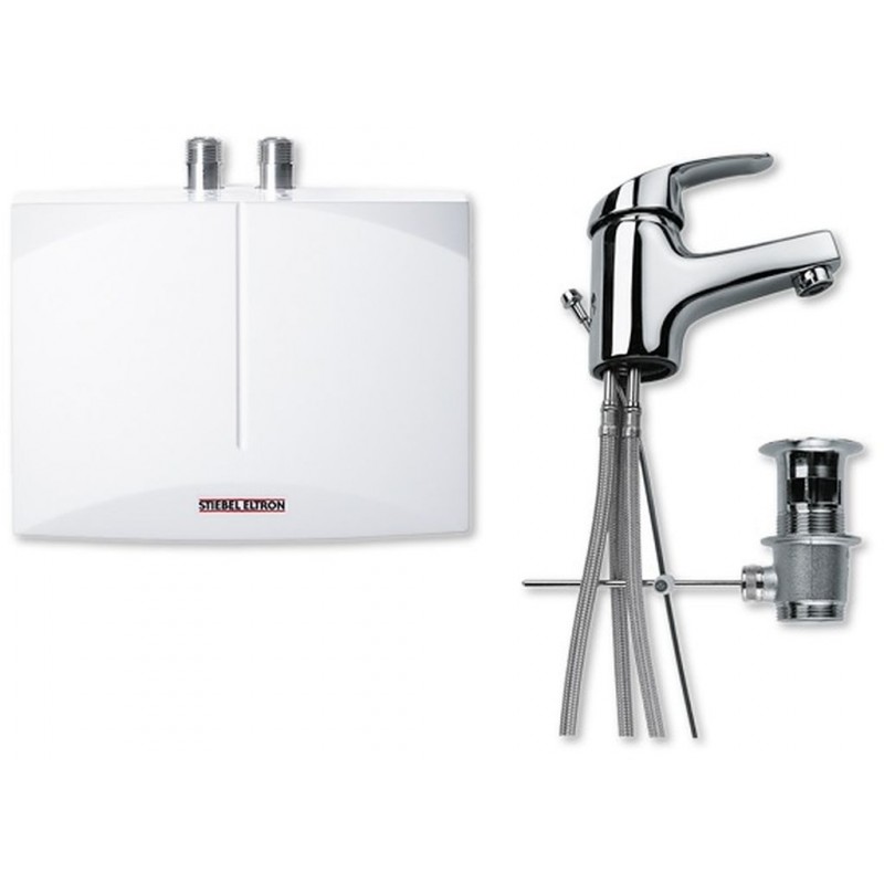 Stiebel Eltron DNM 3 + MAE beztlak. průtokový ohřívač 3,5 kW s pákovou baterií 185414Set malého hydraulicky řízeného elektrického průtokového ohřívače vody DNM 3 s výkonem 3,5 kW a pákovou umyvadlovou beztlakovou baterií MAE vhodného k zásobování teplé vody pro umyvadla k mytí rukou s umístěním pod umyvadlo od výrobce Stiebel-Eltron.