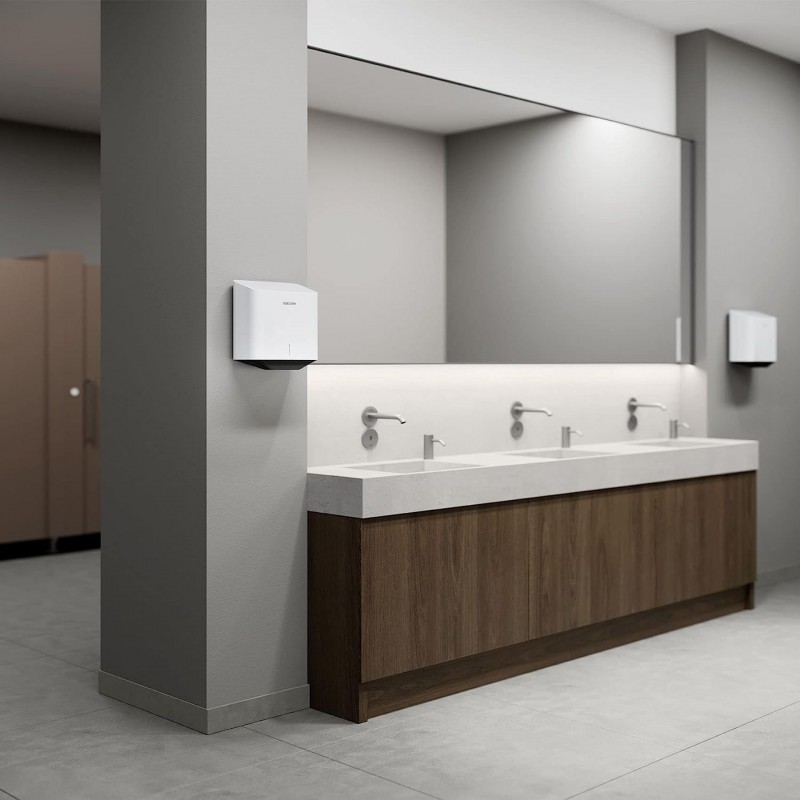 Bezdotykové, infračervené ovládání osoušeče rukou zajišťuje úsporný provoz a zároveň zvyšuje hygienu při osoušení rukou.To zajišťuje také HEPA filtr a integrovaná čistička vzduchu v místnosti.Tímto způsobem se rozloučíte s prachem, pylem, bakteriemi a viry v hygienických místnostech.