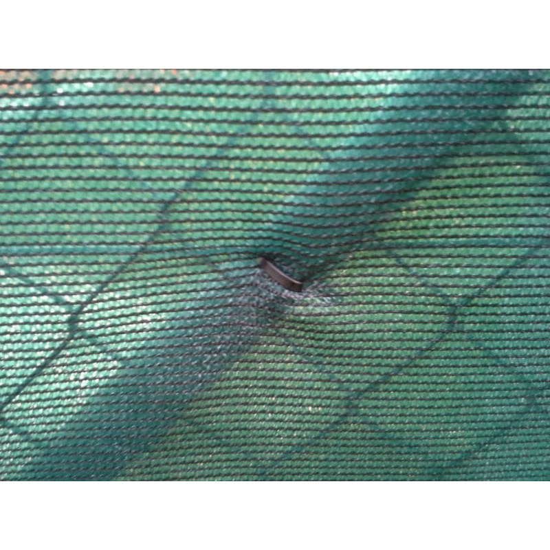 Materiál: PE-HD (polyethylen s vysokou hustotou), horní a spodní okraje mají zpevněná oka pro upevnění tkaniny na plot.