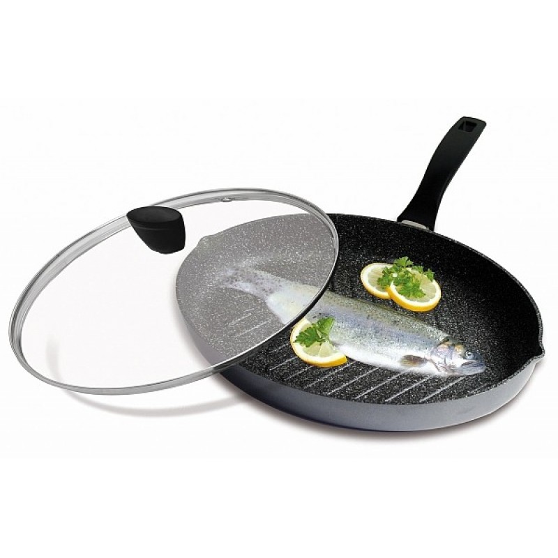 STONELINE Pánev s mramorovým povrchem 35 cm na ryby WX-15715Velká oválná pánev na steaky a ryby s plastovou ergonomickou rukojetí a se skleněnou poklicí.