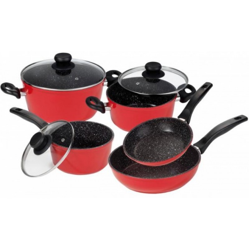 STONELINE Sada nádobí s mramorovým povrchem 8 ks- červené provedení