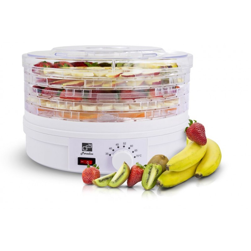 Sušička G21 Paradiso small vám garantuje, že se všechny kousky potravin budou sušit rovnoměrně. Potraviny v ní absorbují teplo a následně uvolňují vlhkost v podobě vodní páry.