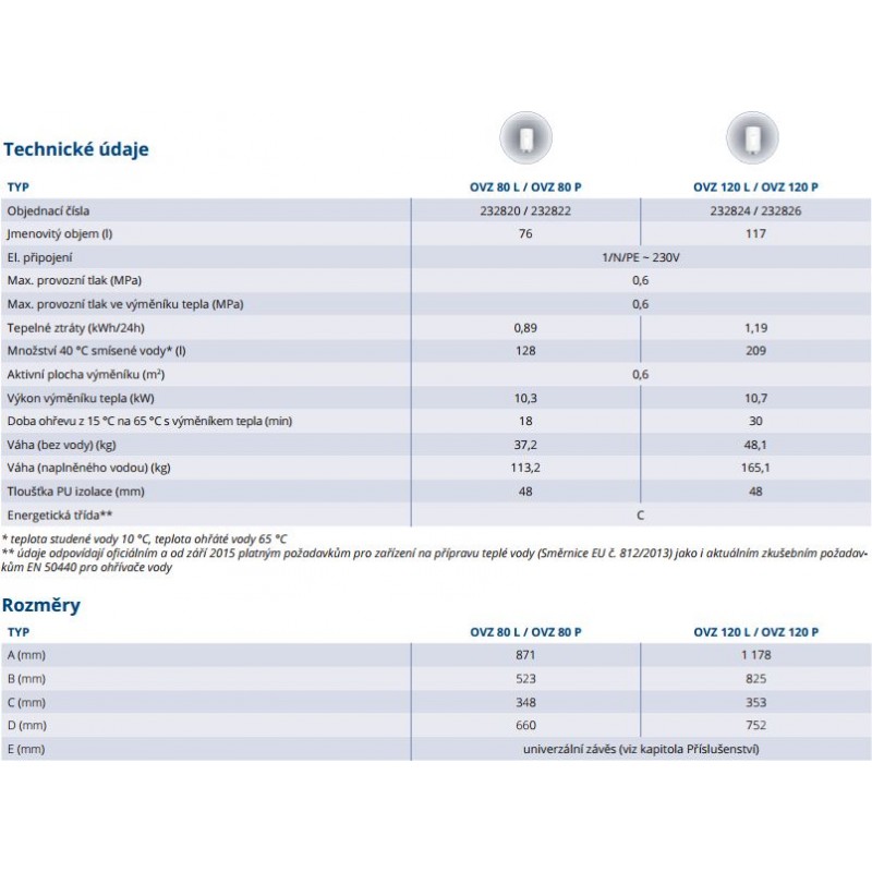 TATRAMAT OVZ 80 L Ohřívač vody s nepřímým ohřevem levýTechnické parametry: